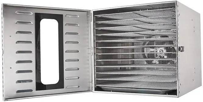 Благодаря большой вместимости можно сушить множество нарезанных продуктов одновременно или работать с крупными кусками без измельчения. Широкие возможности настройки температурного режима позволяют создать идеальный микроклимат для каждого типа продуктов и сохранить максимальное количество полезных веществ в готовом блюде. Корпус выполнен из нержавеющей стали.