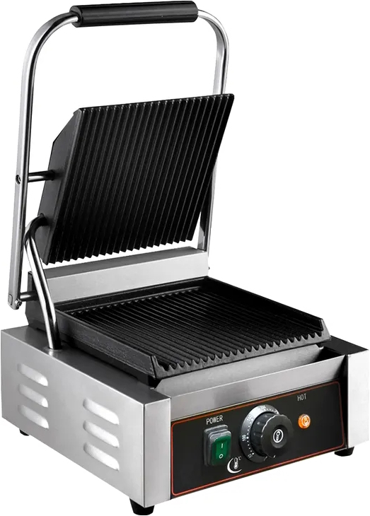 Идеально подходит к применению на предприятиях общественного питания малого и среднего форматов, прежде всего в заведениях типа "фаст-фуд". Корпус изготовлен из нержавеющей стали, рабочие поверхности – из чугуна с антипригарным покрытием.