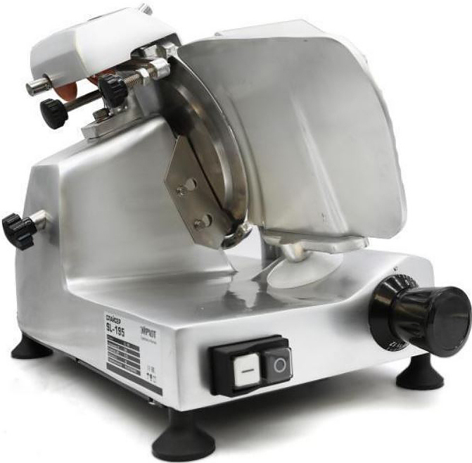 Гастрономический электрический слайсер AIRHOT SL 195 предназначен для нарезки колбасы, ветчины и сыра твёрдых сортов ломтиками различной толщины на предприятиях общественного питания и торговли.