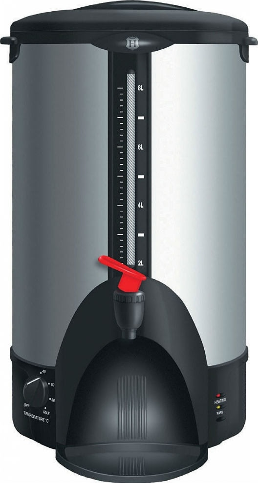 Имеет мерное стекло и терморегулятор. Кран для розлива воды расположен в нижней части корпуса. Каплесборник защищает поверхность стола от капель горячей воды. Оснащён защитой от включения с пустым резервуаром. Имеет функцию поддержания температуры горячей воды. Внешний корпус изготовлен из нержавеющей стали и пластика, внутренний резервуар – из нержавеющей стали.