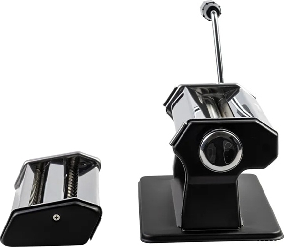Оснащена парой валков из никелированной стали, приводящихся в движении съёмной ручкой. Изготовлена из хромированной и окрашенной в чёрный цвет стали.