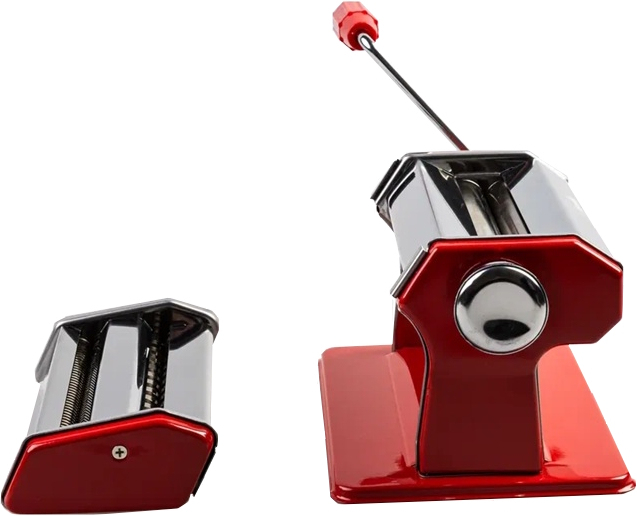 Оснащена парой валков из никелированной стали, приводящихся в движении съёмной ручкой. Изготовлена из хромированной и окрашенной в красный цвет стали.