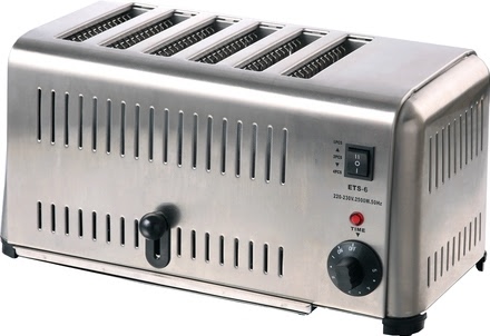 Вертикальный тостер GASTRORAG TT-ETS-6 используется для подогрева и обжаривания ломтиков хлеба на предприятиях общественного питания и торговли. Оснащён терморегулятором с функцией таймера и рычагом для извлечения ломтиков. Может работать в режиме 2, 4 или 6 задействованных гнезд.