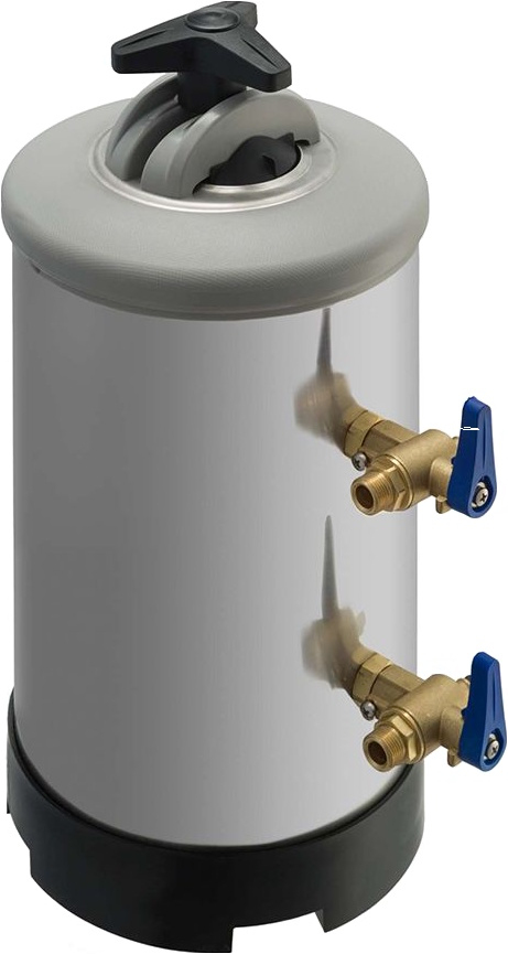 Содержит синтетическую ионную смолу, нейтрализующую ионы магния и кальция и заменяющую их на ионы натрия. Устанавливается между источником воды и оборудованием. Имеет герметичную крышку. Изготовлен из нержавеющей стали.